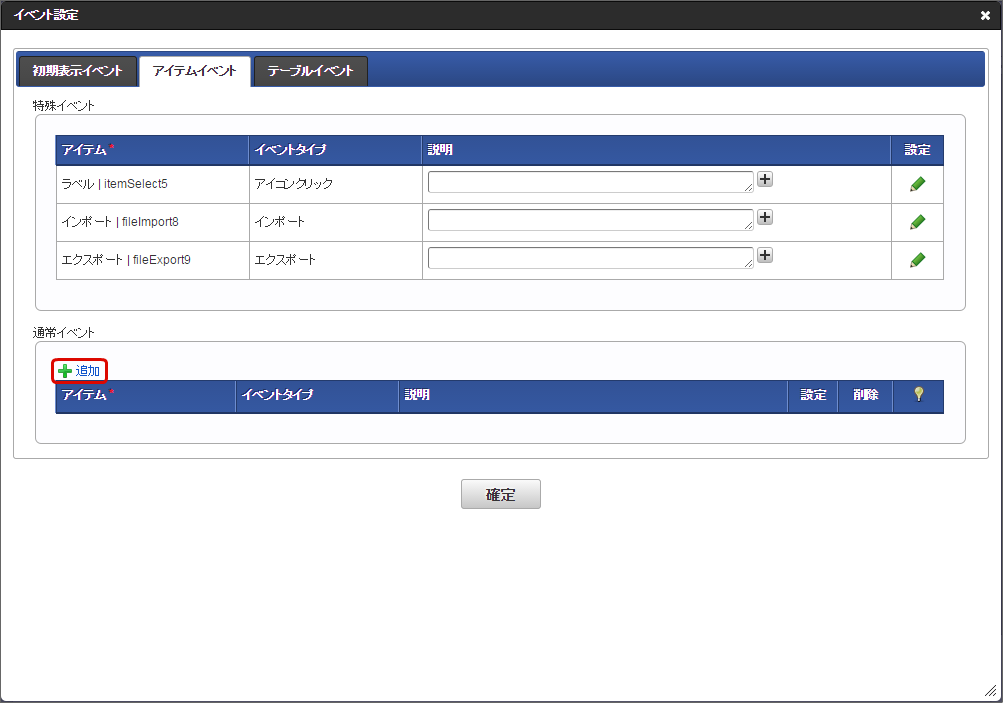 「通常イベント」の「追加」をクリックします。