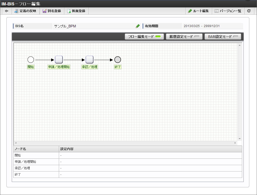 「フォーム・デザイナ」画面にて外部連携を設定した直後には、フローのアイコンに外部連携マークが表示されません。「IM-BIS - フロー編集」画面のリロードボタンをクリックするか、他の操作でリロードが発生することによりアイコンが表示されます。