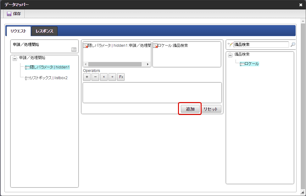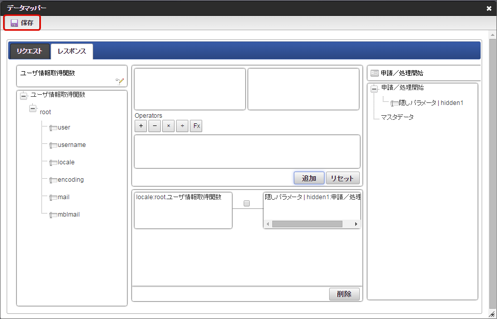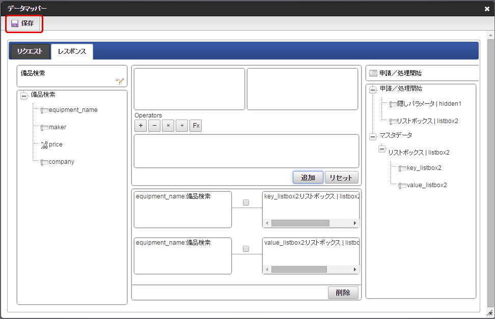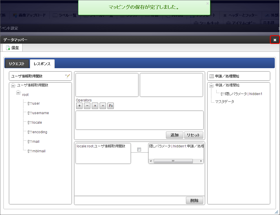 保存したら右上の「×」で「データマッパー」画面を閉じます。