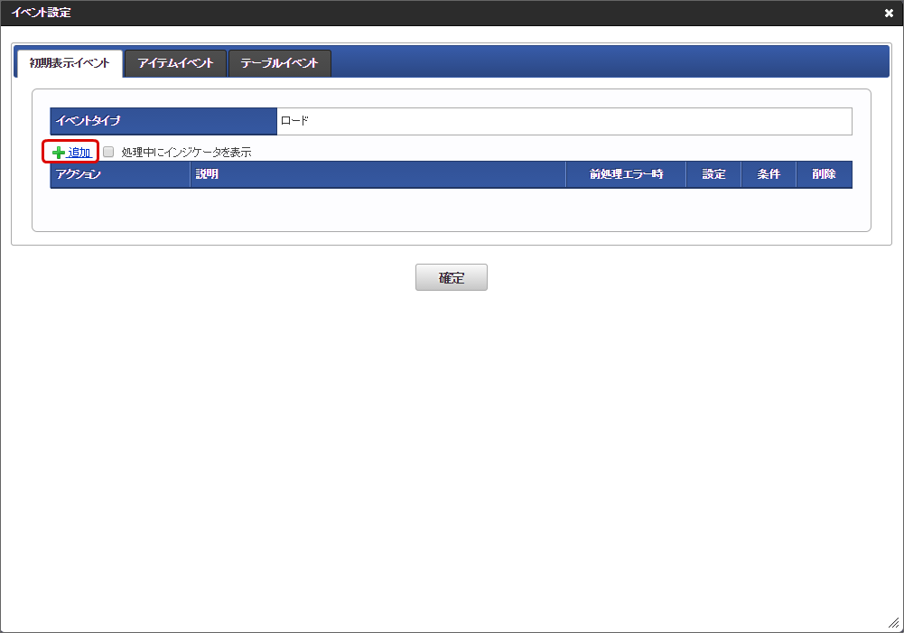 「フォーム・デザイナ」画面で「アクション設定」をクリックします。