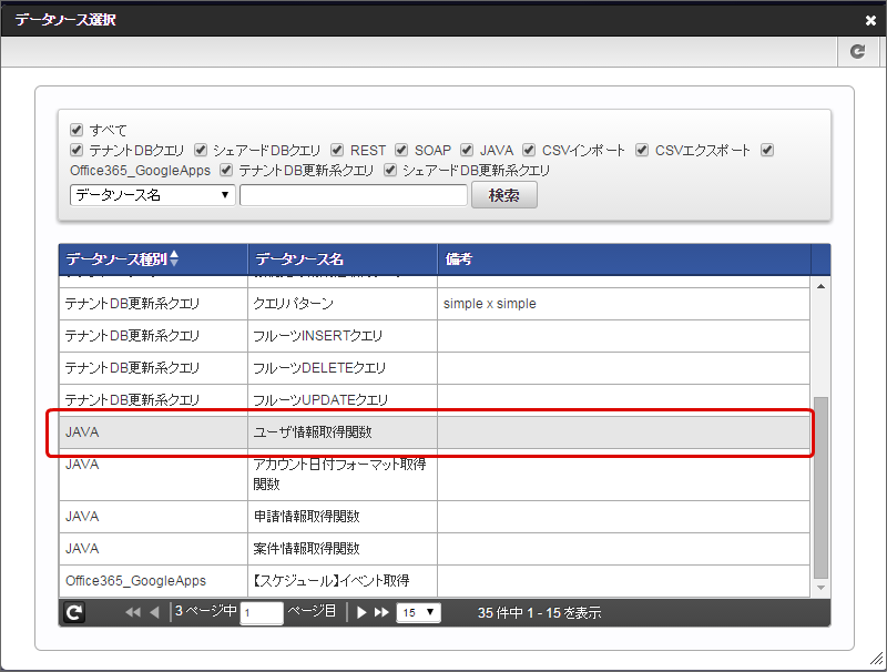 対象の画面アイテムに表示値・送信値に利用する外部連携のデータソース定義をクリックします。