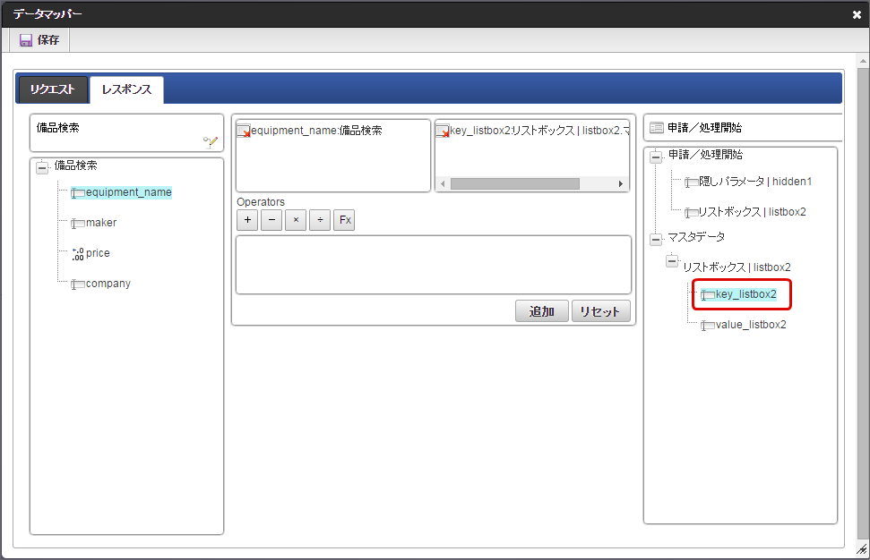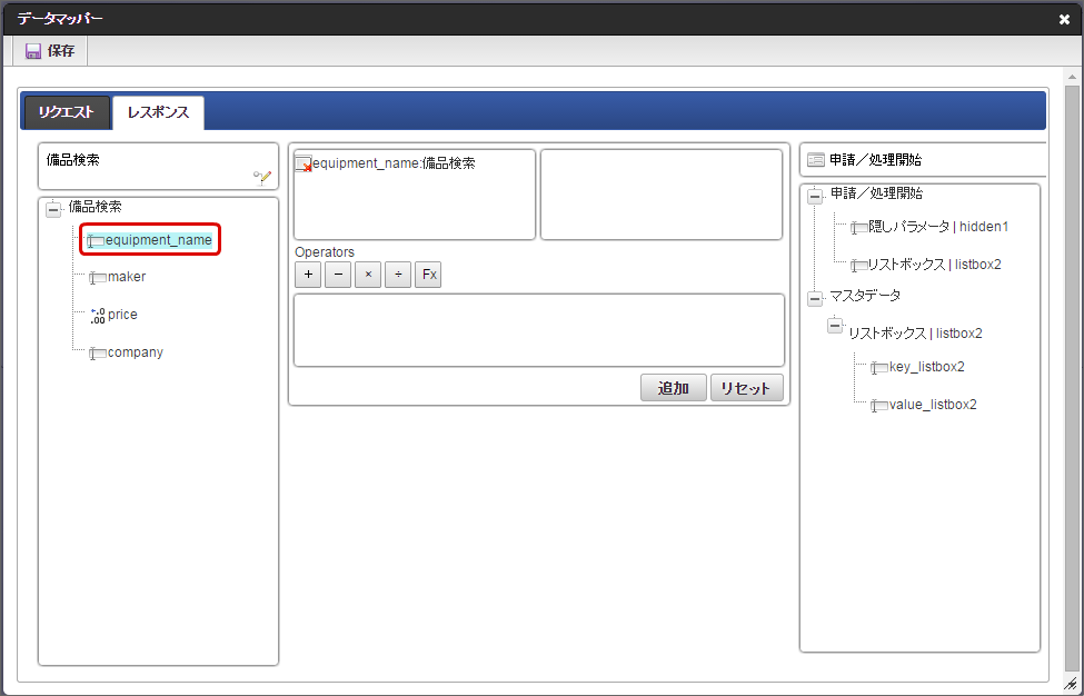 - 関数の取得値と取得値を格納するための画面アイテムとのマッピング