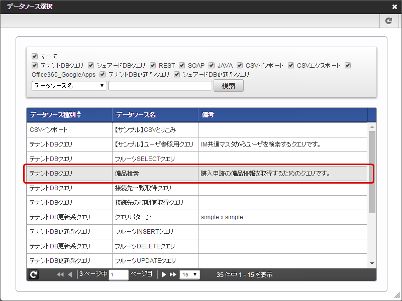 データソース定義のパラメータ(リクエストパラメータ)をクリックします。