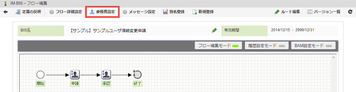 画面上の「参照者設定」をクリックします。
