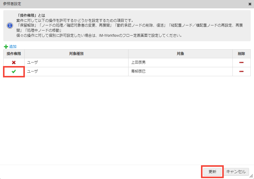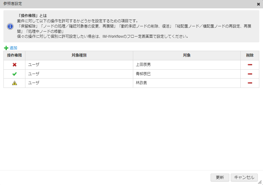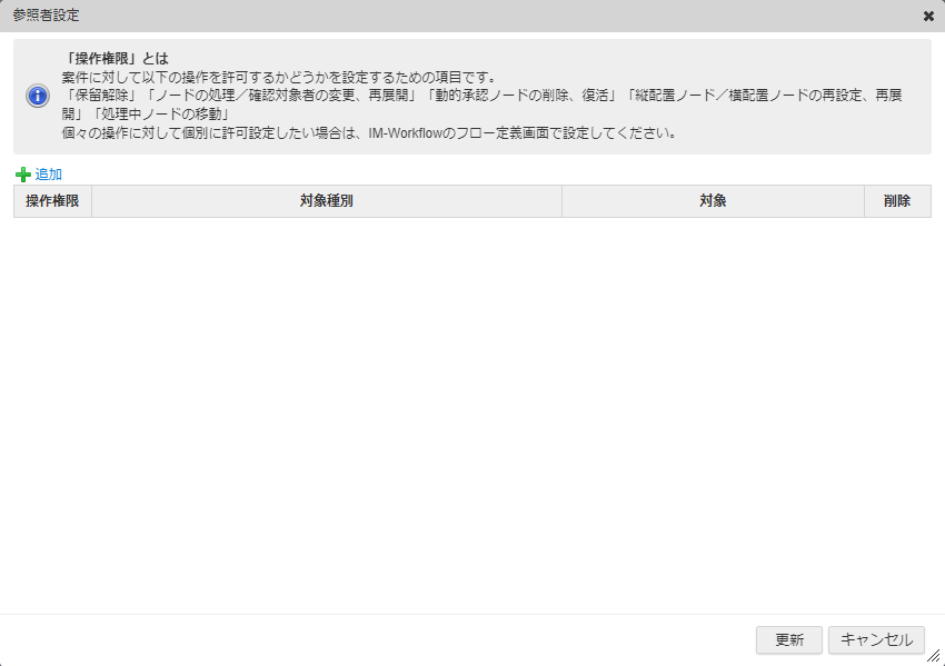 さらに「追加」ボタンをクリックして、操作権限を付与するための参照者を設定します。