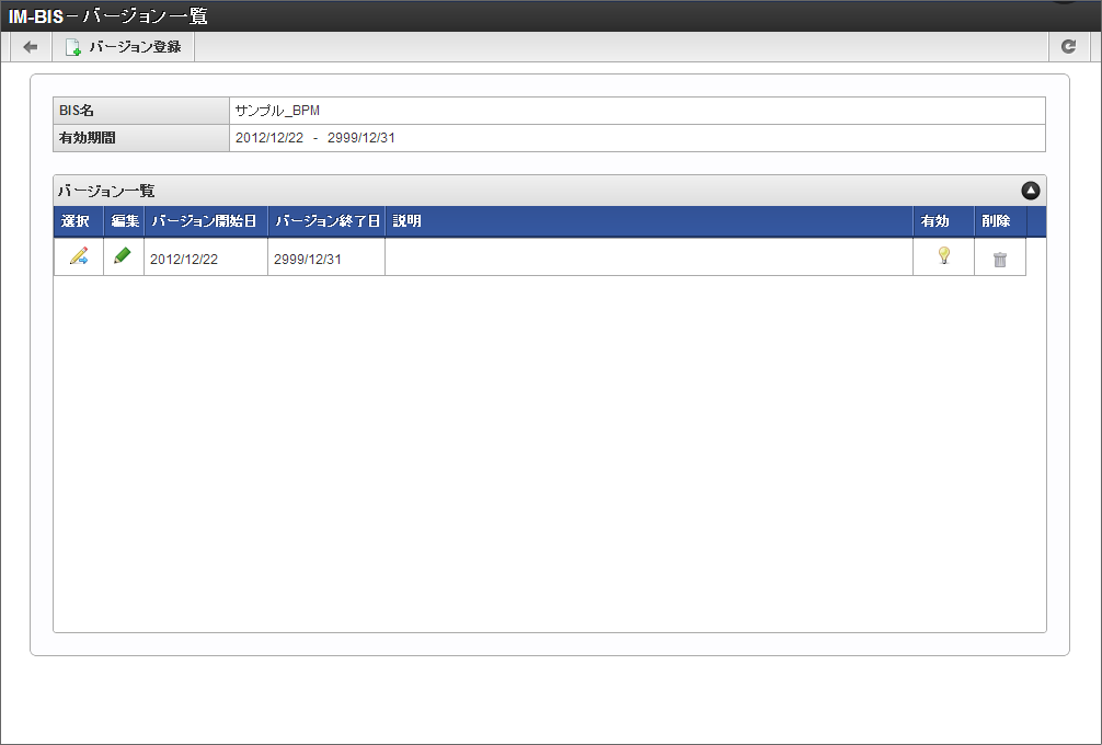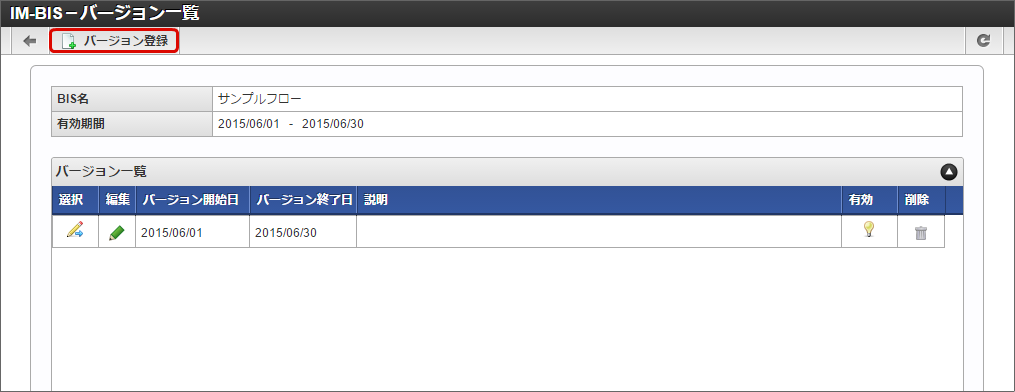 7.14.1. 「IM-BIS- バージョン一覧」画面からバージョン情報を管理する¶