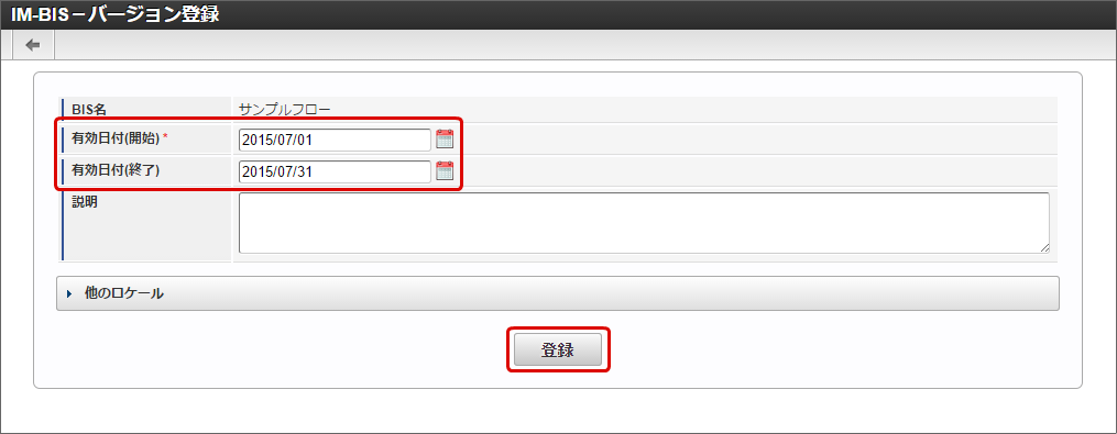 追加するバージョンの有効日付を入力し、「登録」をクリックします。