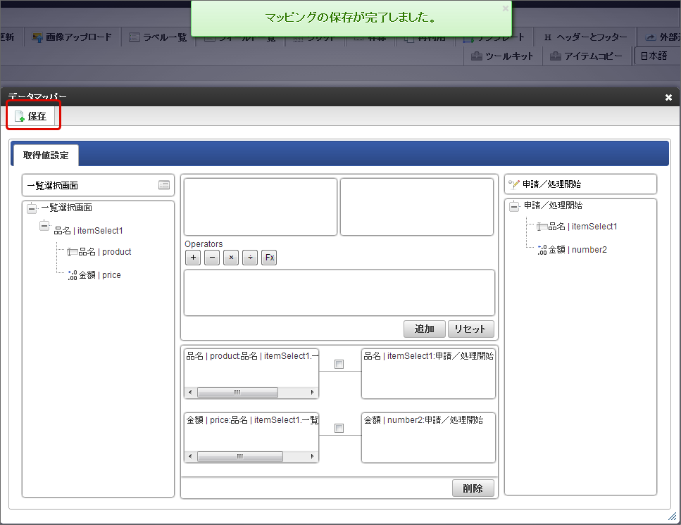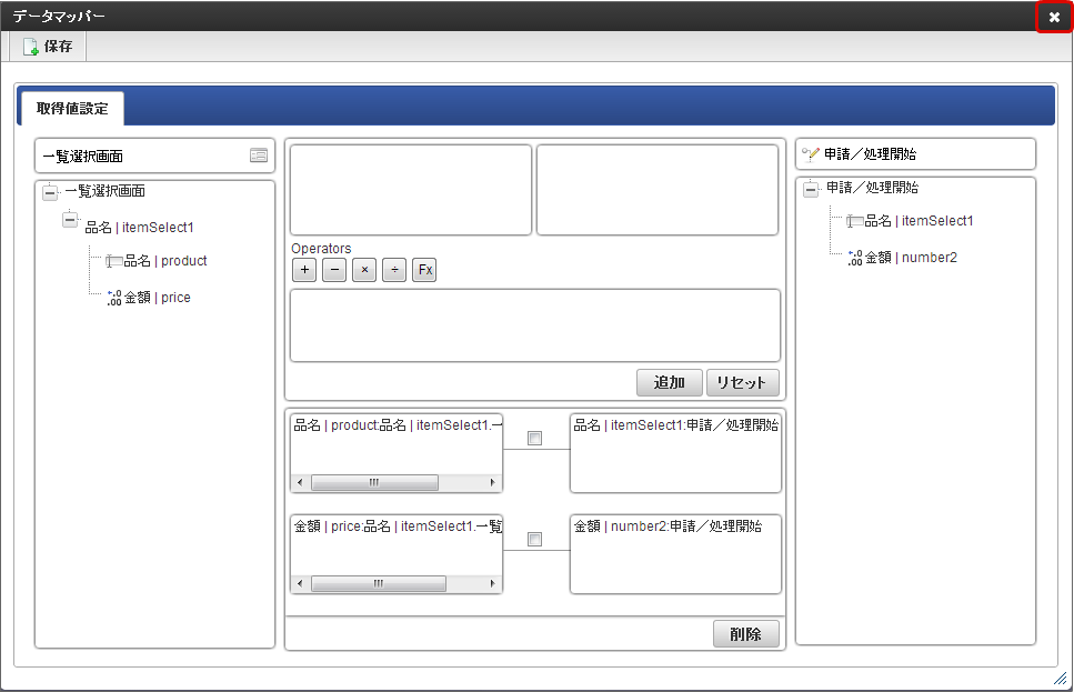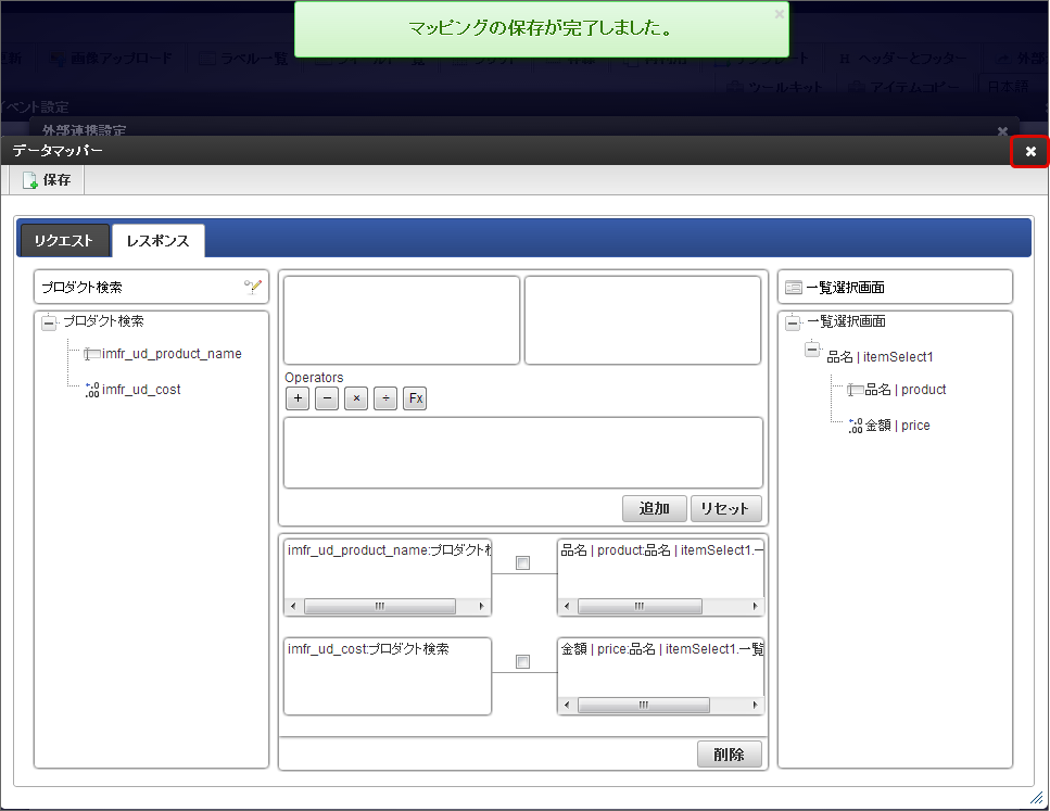 保存したら右上の「×」で「データマッパー」画面を閉じます。