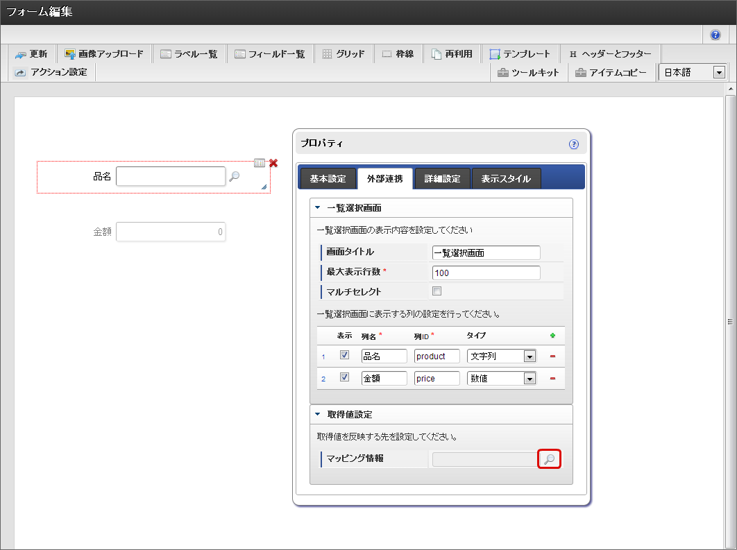 一覧画面と選択した値の反映先のマッピングを行う¶