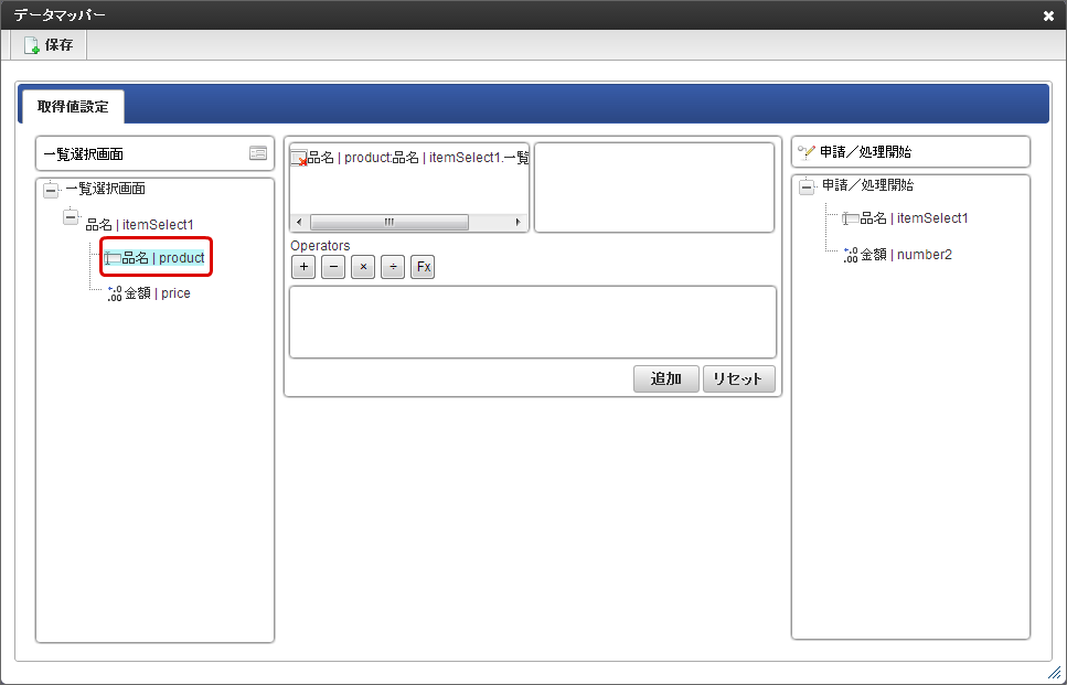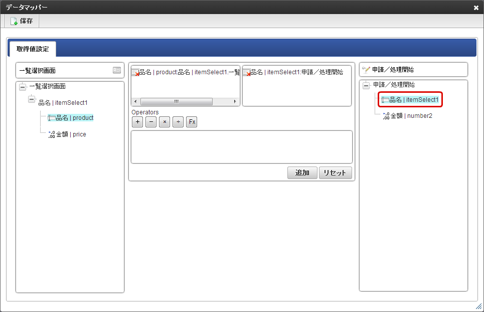 左の一覧選択画面の一覧項目から反映したい項目をクリックします。