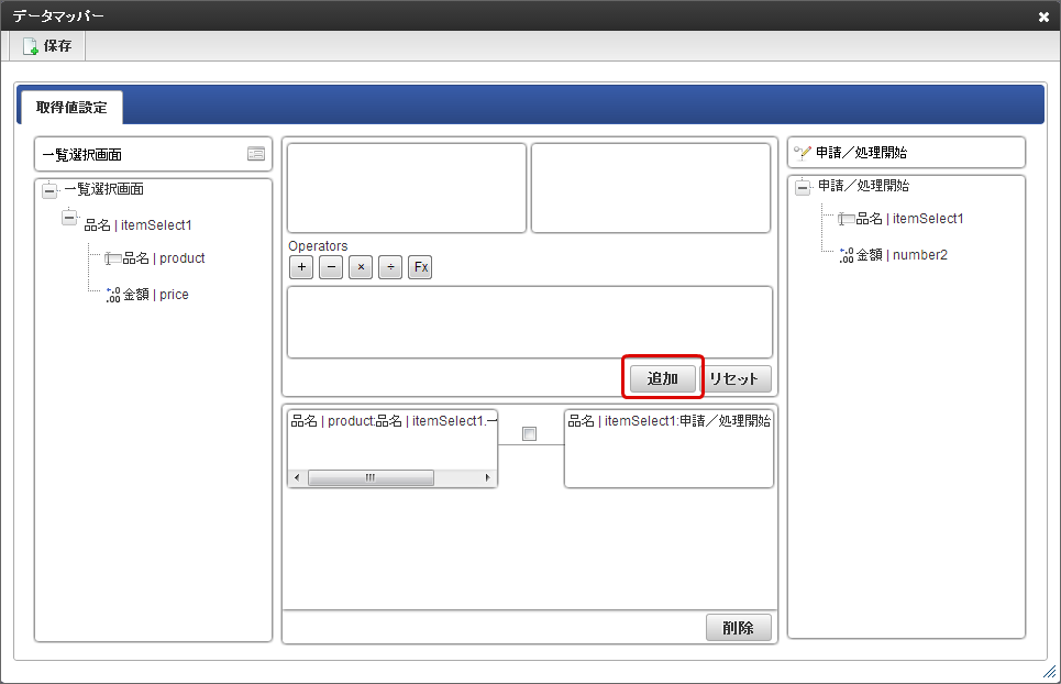 「追加」をクリックしてマッピングします。