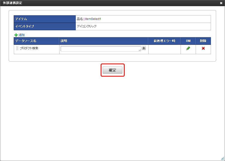 「確定」をクリックして外部連携設定を保存します。