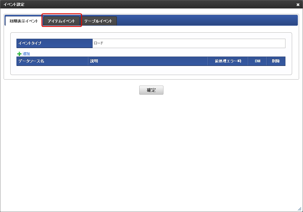 「アイテムイベント」をクリックします。