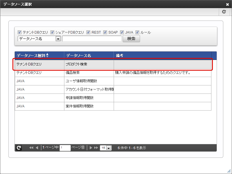 「一覧選択」にデータソース定義を設定する¶