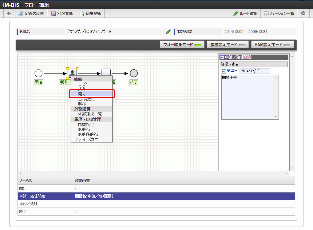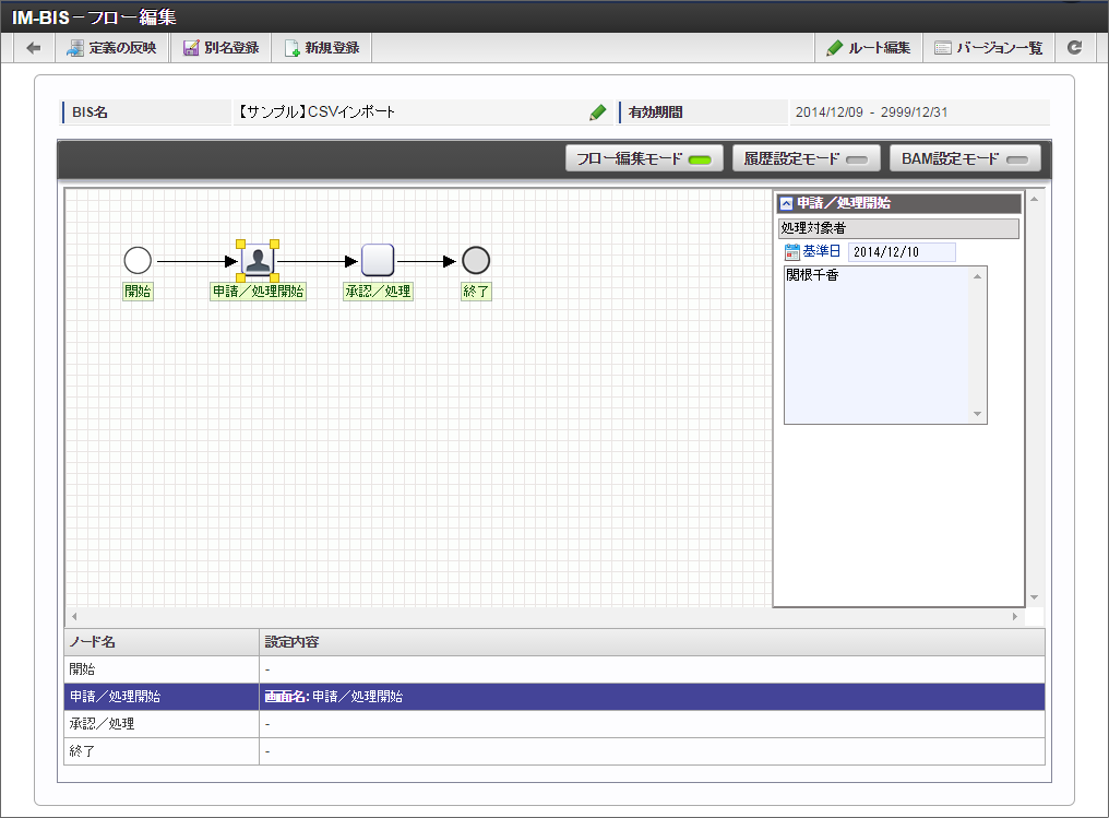 「IM-BIS - フロー編集」画面を表示します。