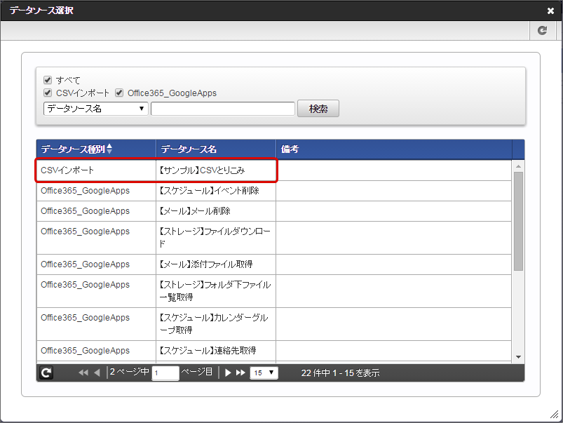 一覧選択の検索で利用する外部連携のデータソース定義をクリックします。