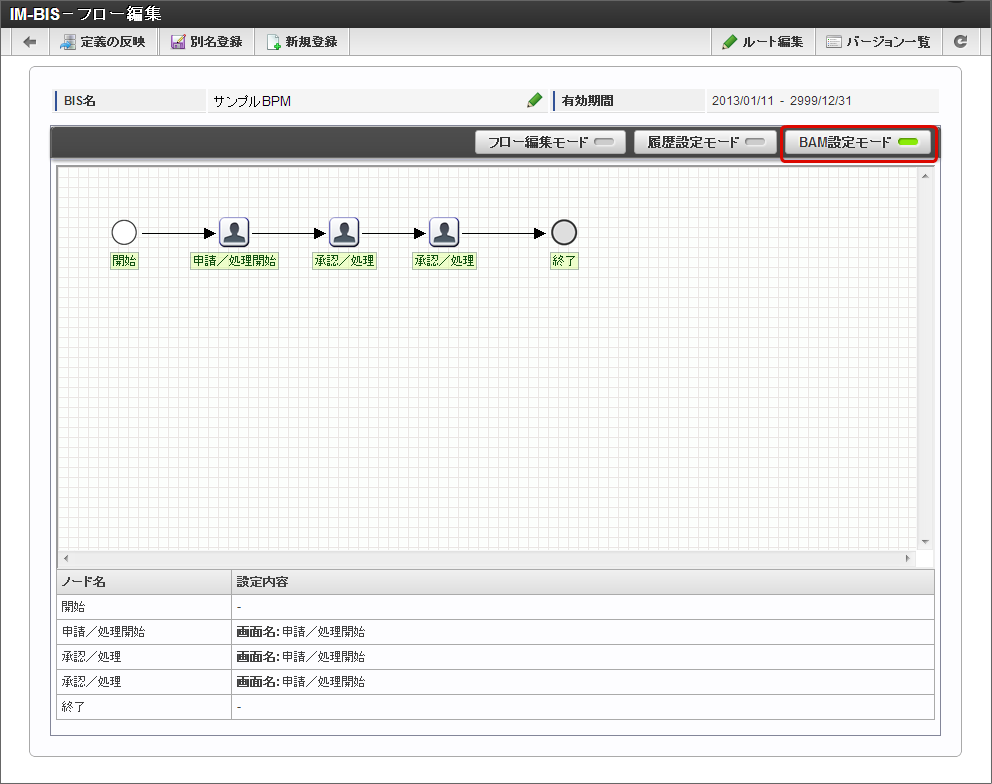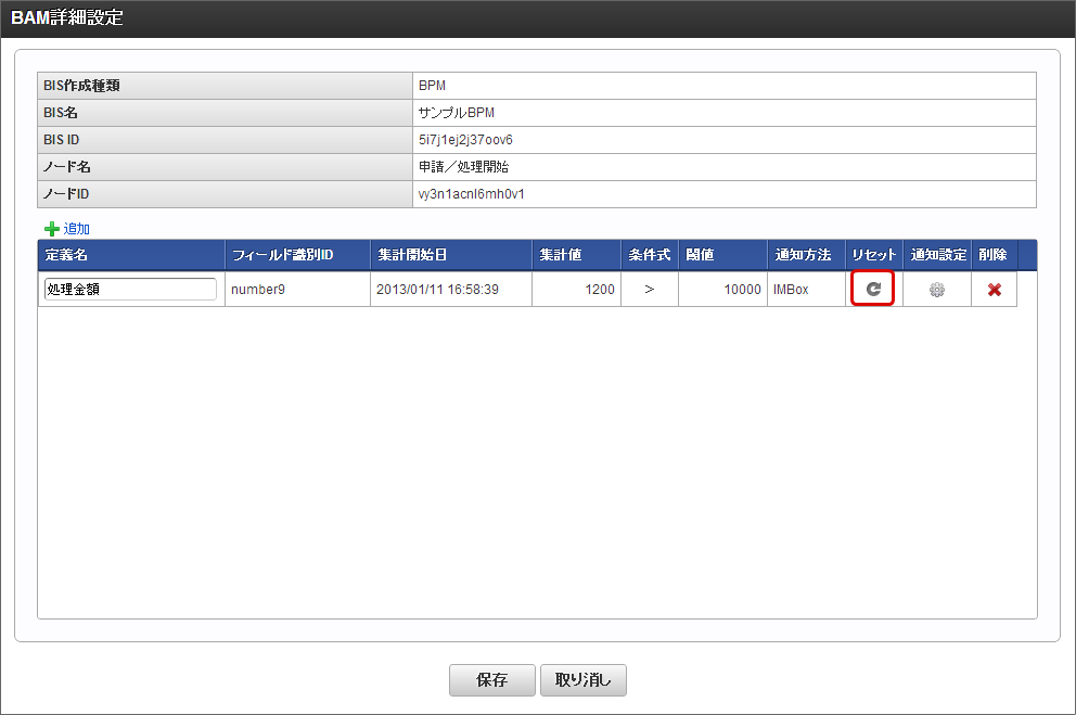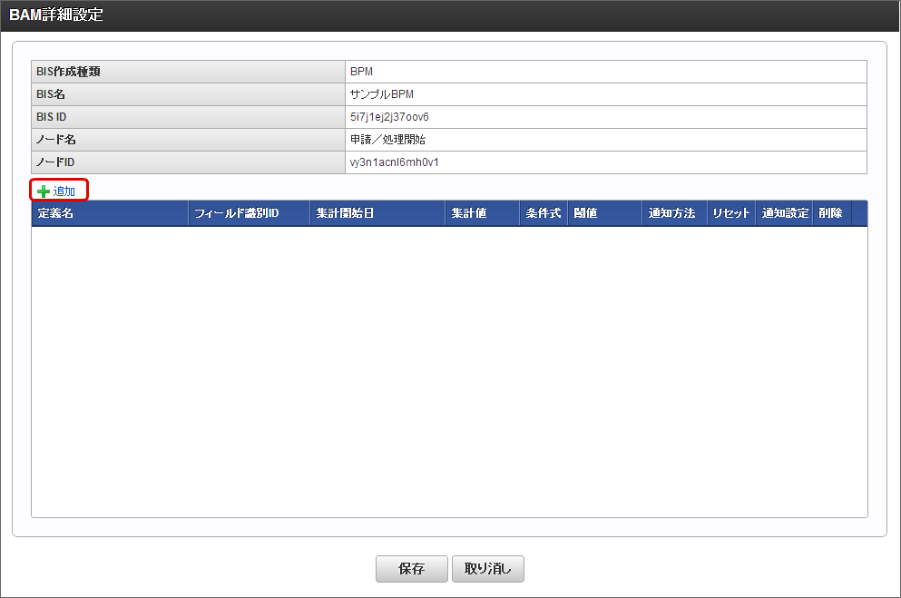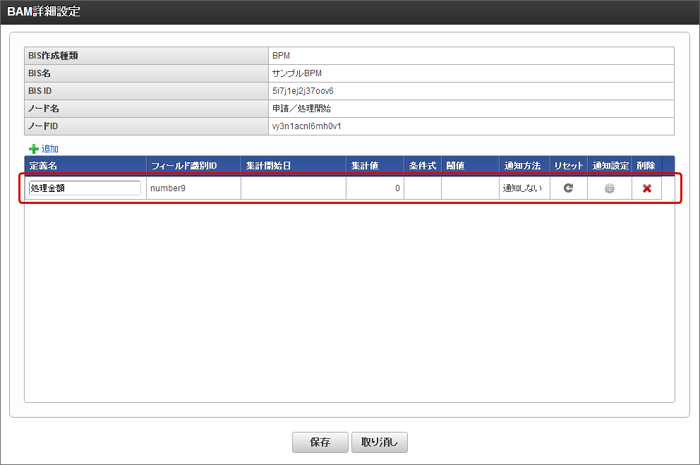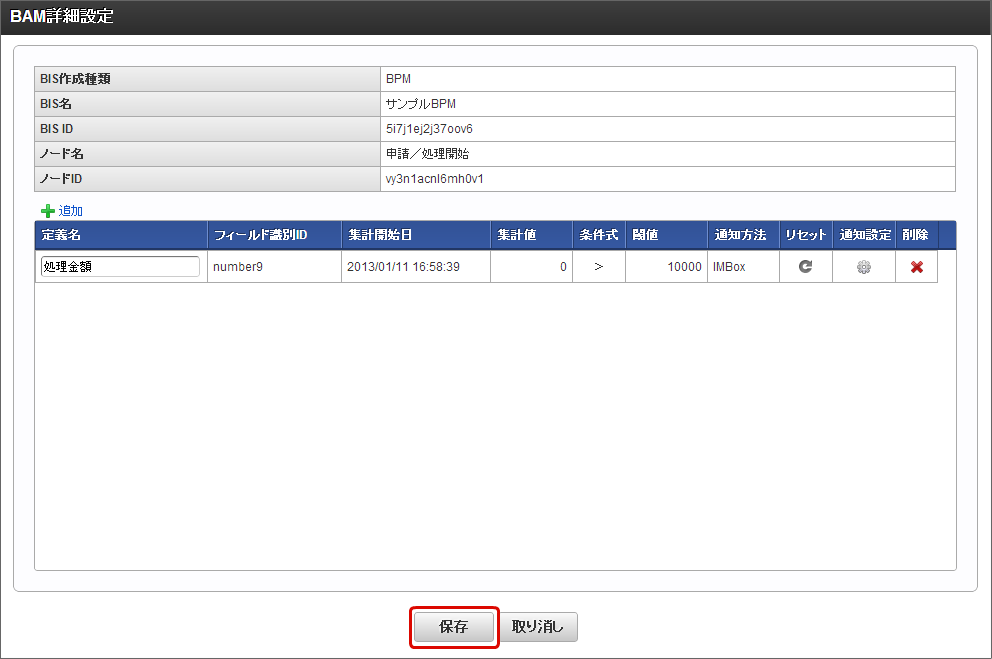 設定した定義が「BAM詳細設定」画面の一覧に反映されます。