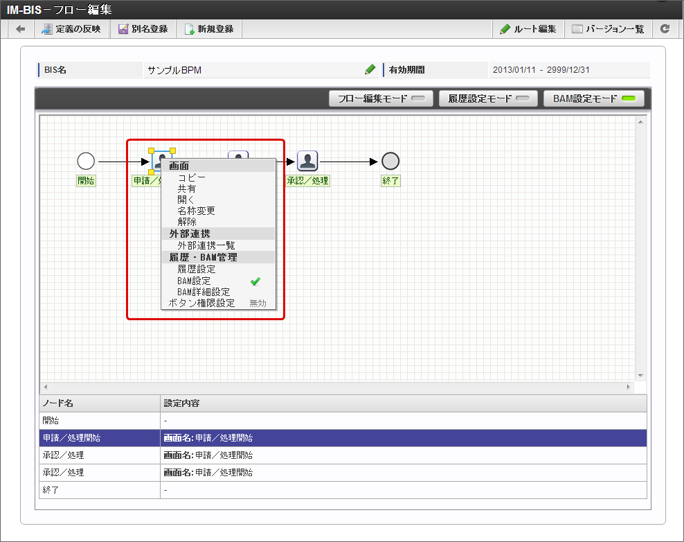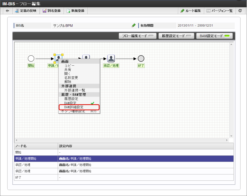 IM-BIS のフローで、BAMを設定することにより、以下の処理を行うことができます。