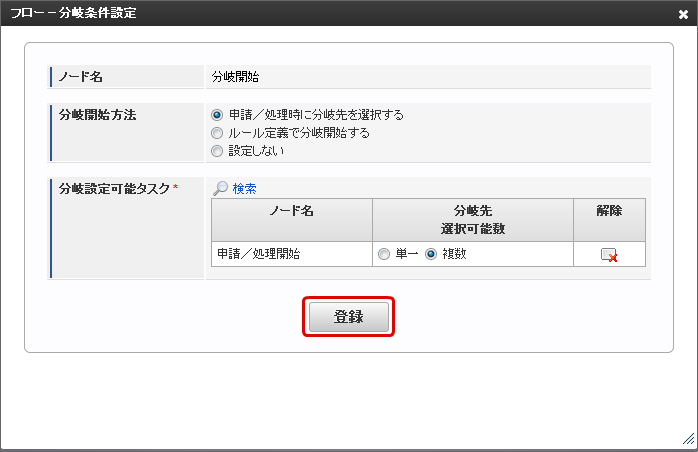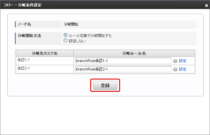 最後に「登録」をクリックすると、分岐条件が設定できます。