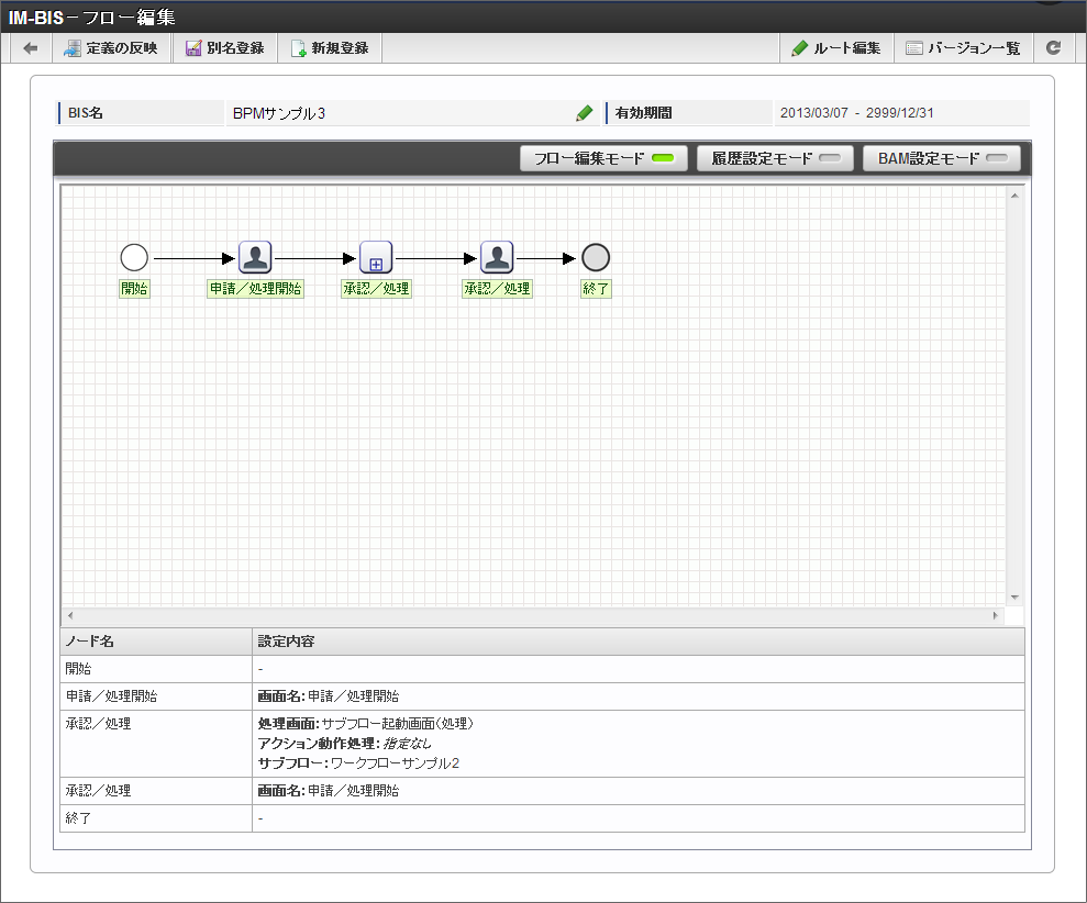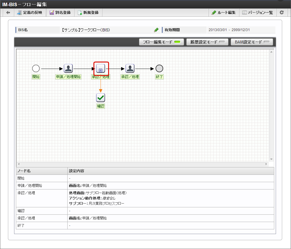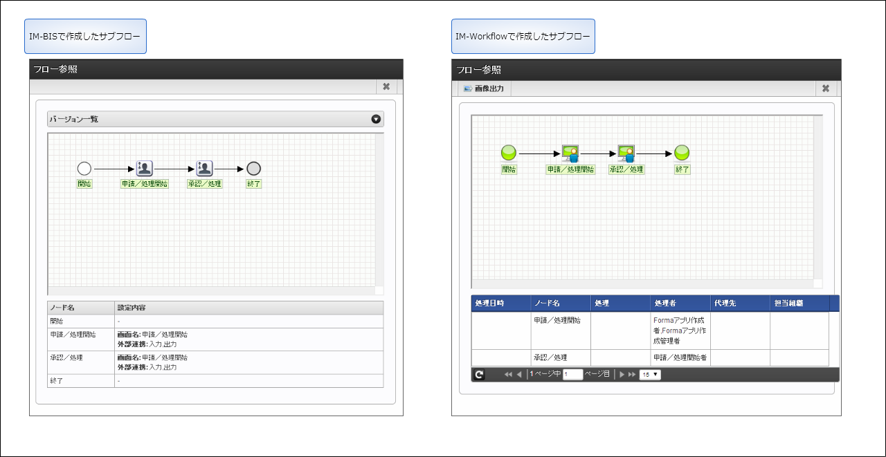 サブフローを利用したい場合、IM-BPMの利用を推奨します。 今後BPM関連の新規機能の追加はIM-BPMに対してのみ実施を予定しています。 そのため、サブフローの利用については非推奨とし、IM-BPMの利用を推奨します。