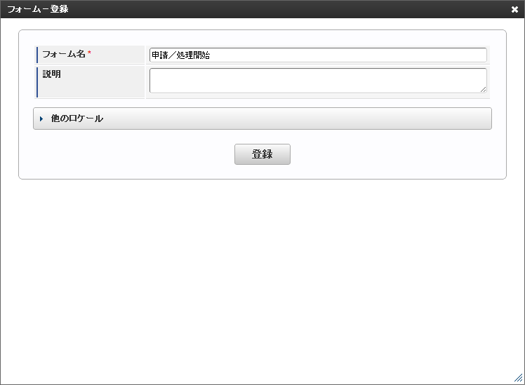 新規の場合、「フォーム - 登録」で、画面の名称を入力して「登録」をクリックします。