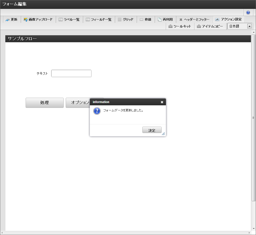 フロー編集に戻る場合は、「フォーム・デザイナ」画面を表示しているウィンドウを「×」で閉じます。