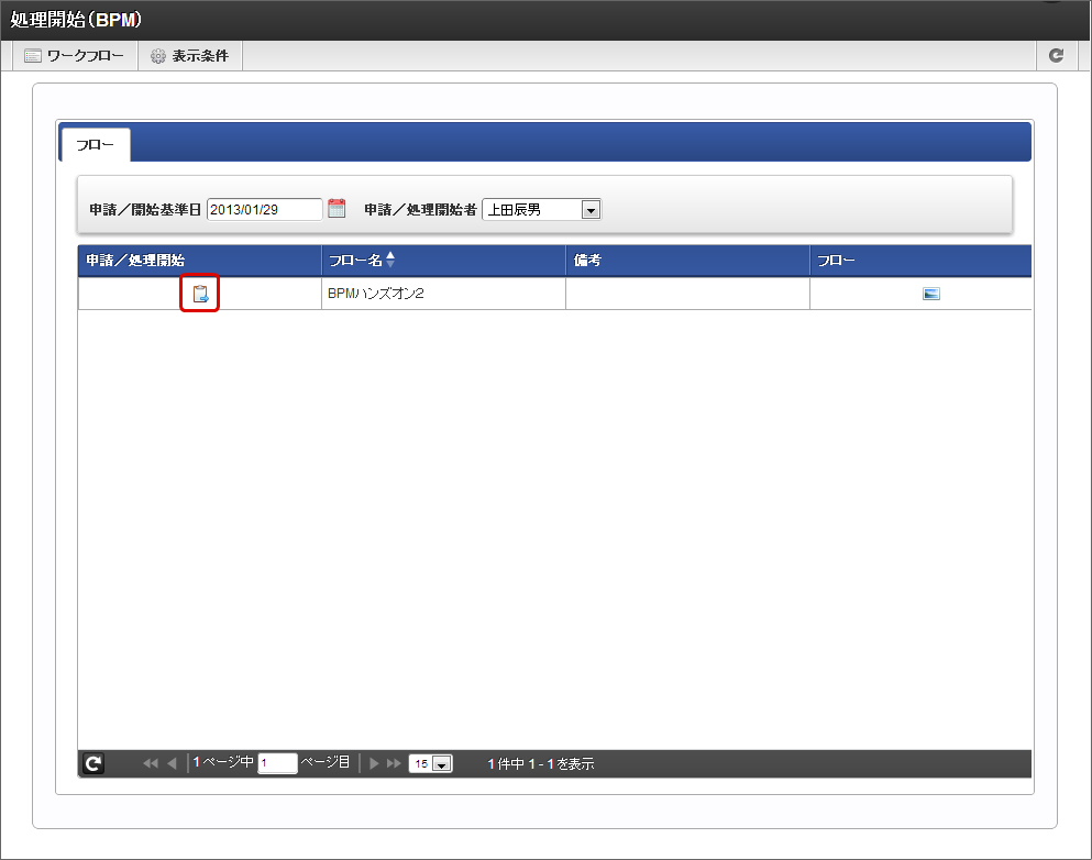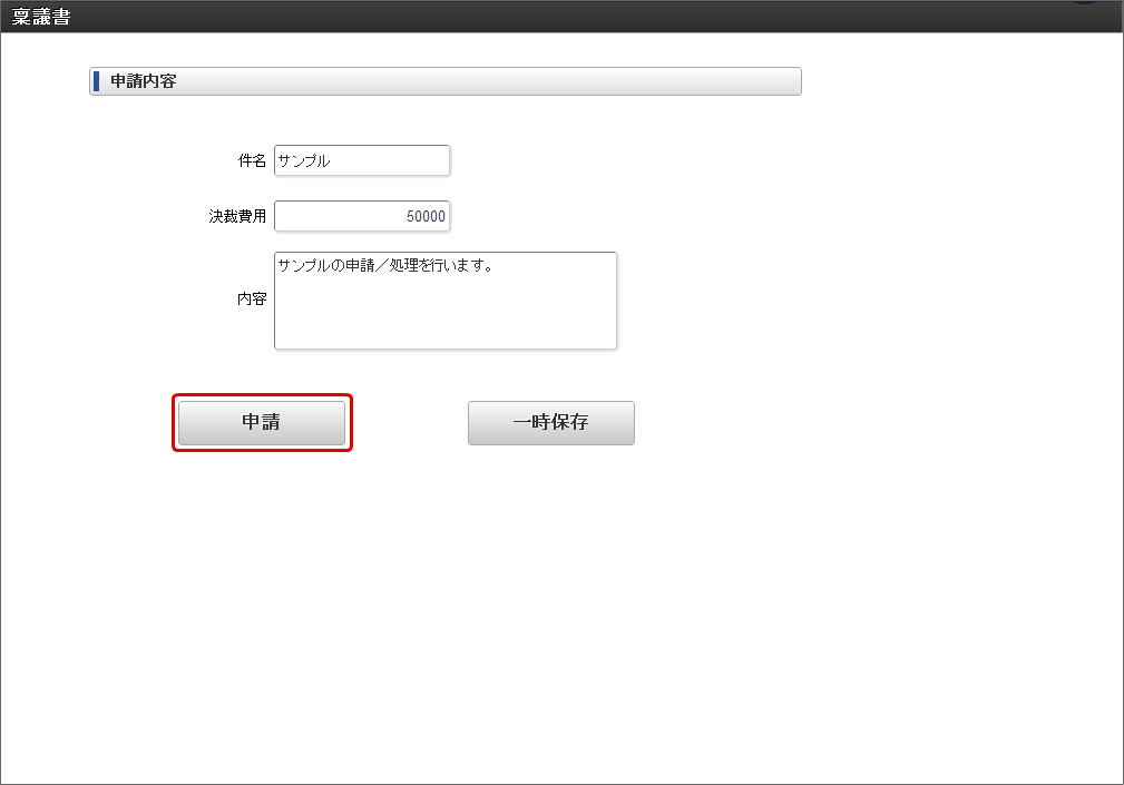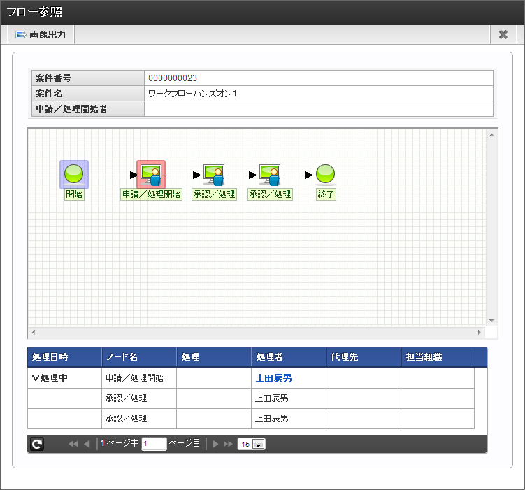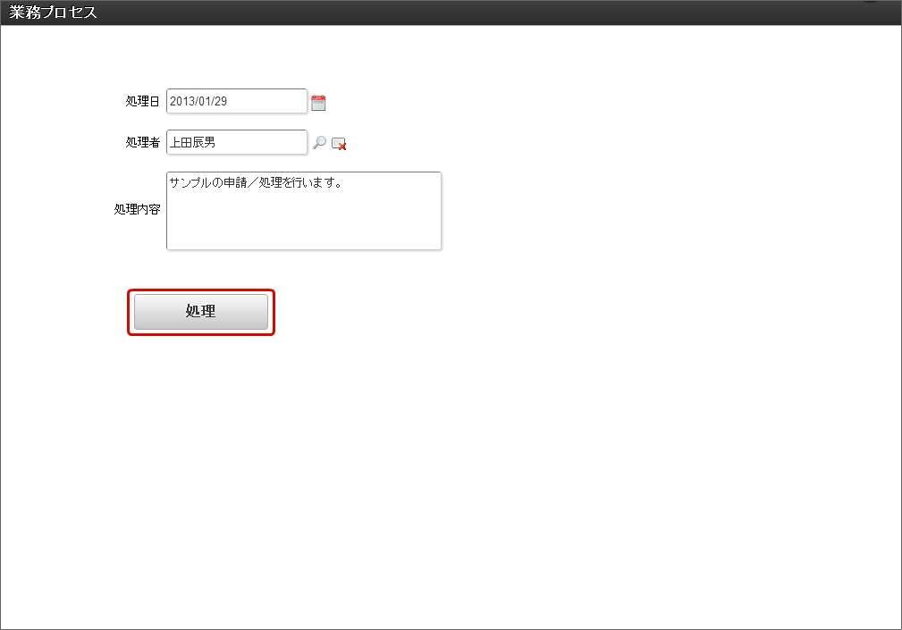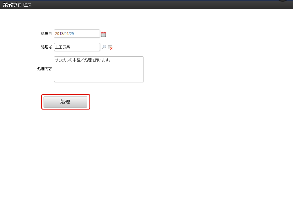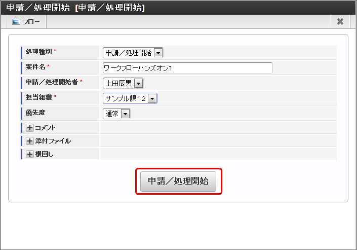 「申請/処理開始」画面で「申請/処理開始」を実行します。