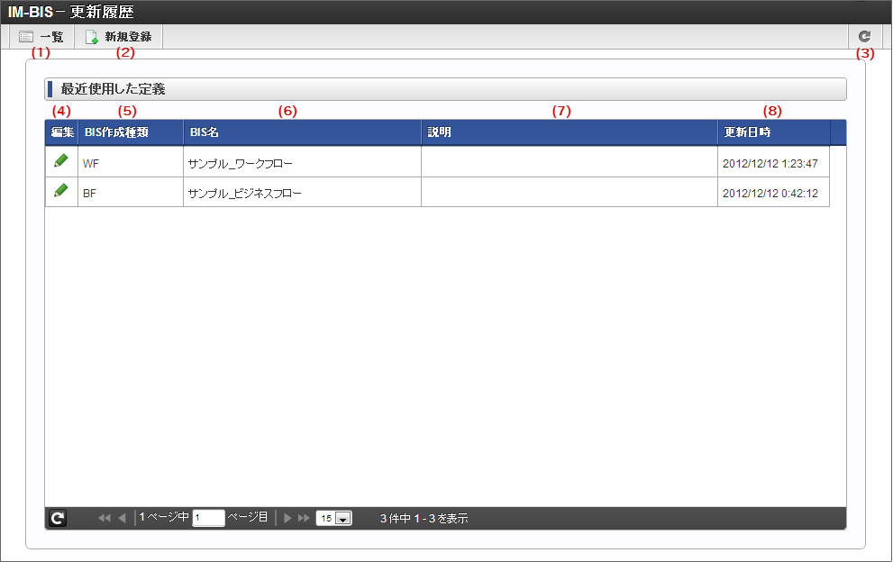 9.2.1. 「IM-BIS - 更新履歴一覧」画面の機能と各部の説明¶