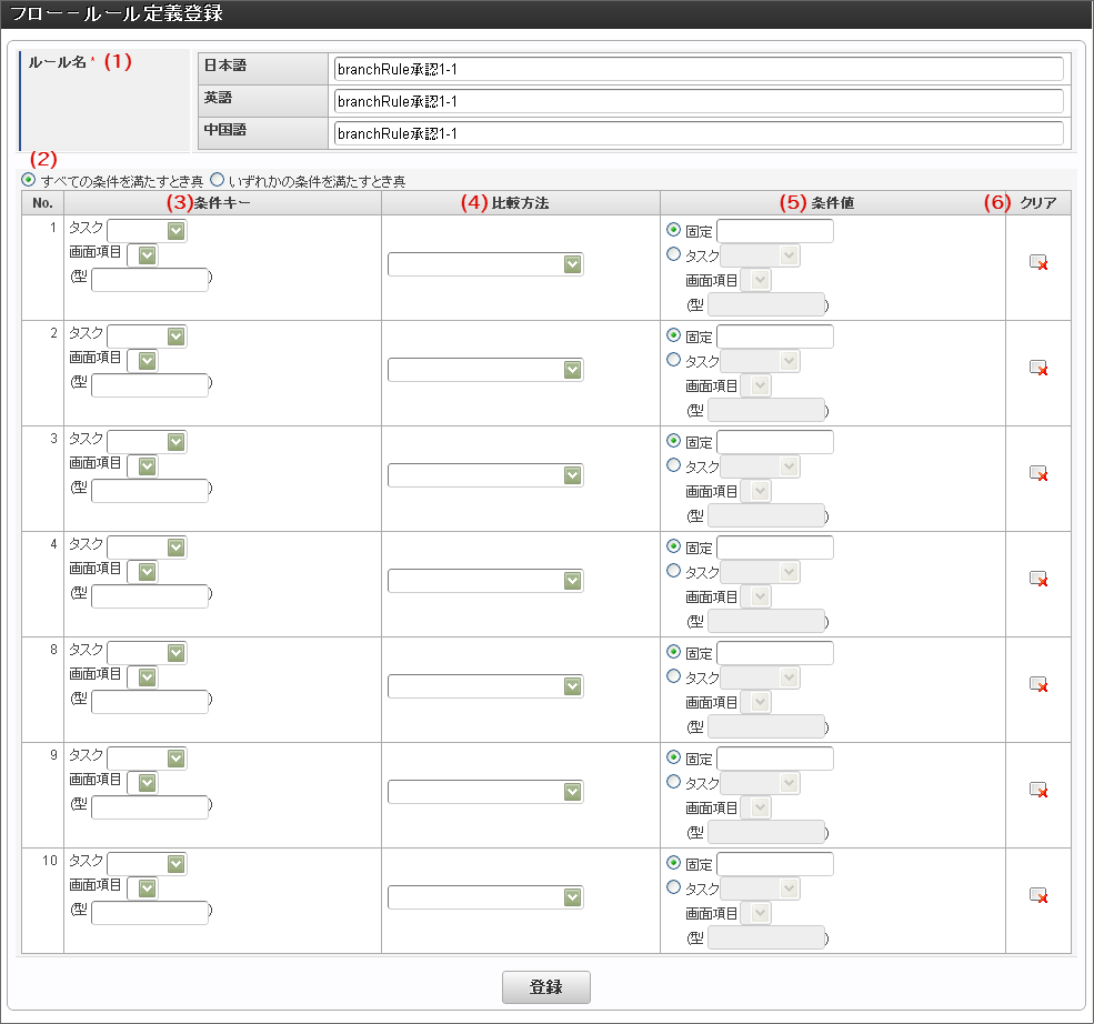 ルール定義では、条件を10個まで設定することができます。ルール定義の設定内容は、一番下の「登録」をクリックして保存します。