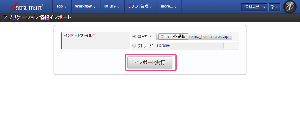IM-Workflow の定義ファイルをローカルからインポートする¶