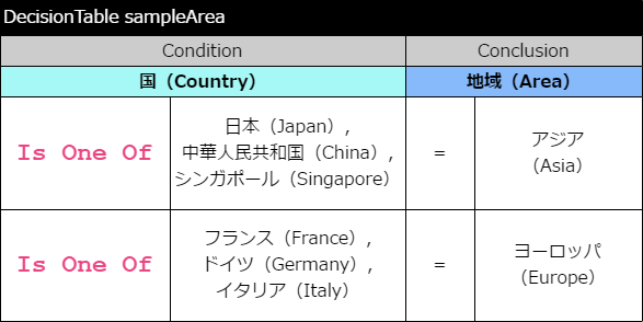 - 「OR条件」は、 DecisionTable の対象の複数の条件の評価(結果)のセルを結合することで表現することができます。