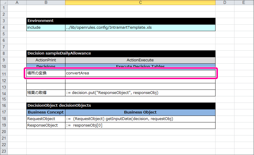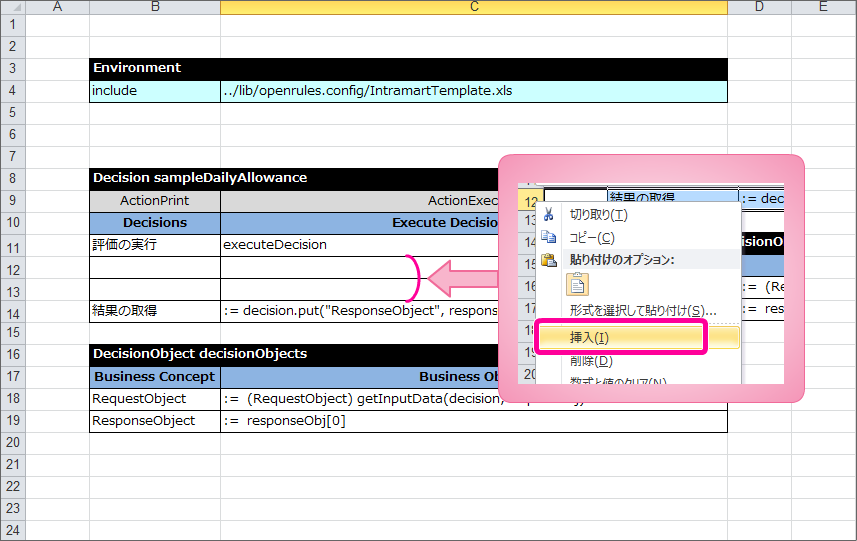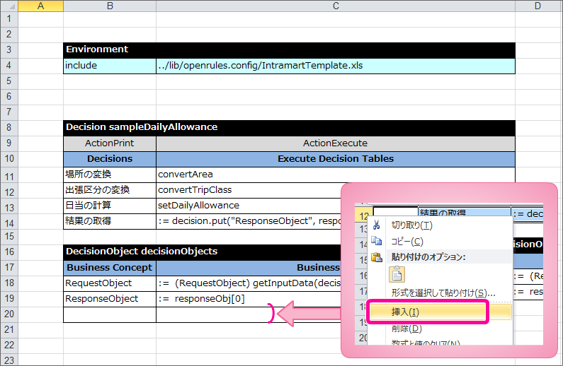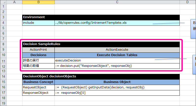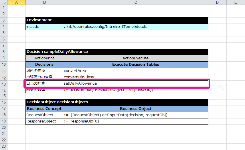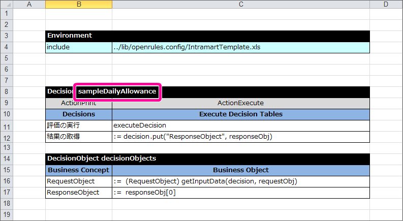 最後に DecisionObject を定義して、Excelのルール定義ファイルを完成させましょう。