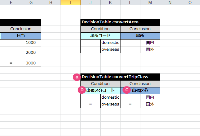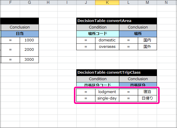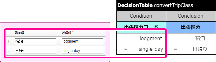 出張区分のマッピング DecisionTable を作成する¶