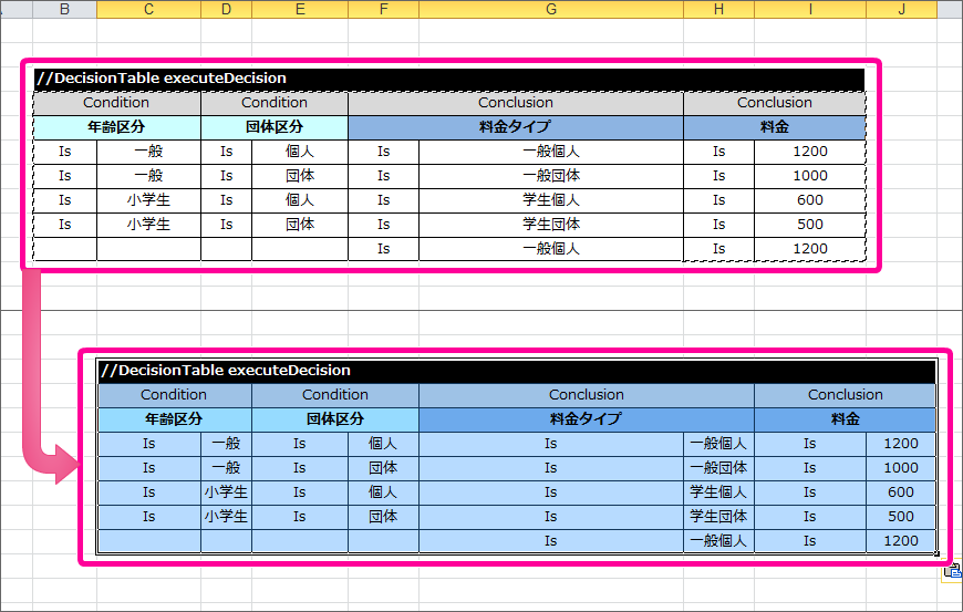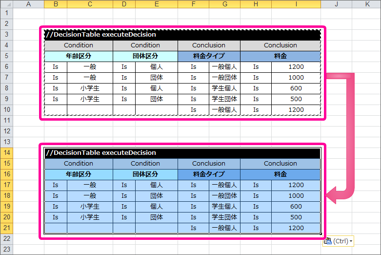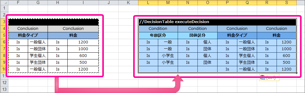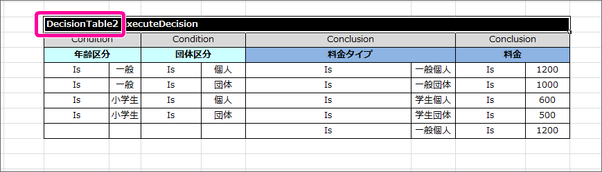 ルールの構成でまとめた4つの DecisionTable を作成する¶