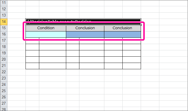 最初に DecisionTable の列を必要な形にし、条件と評価の項目名を設定していきましょう。