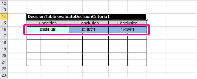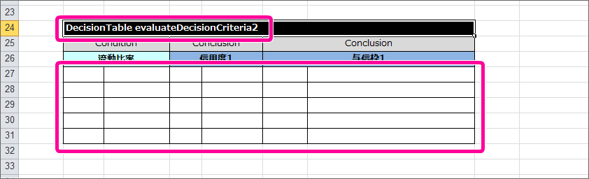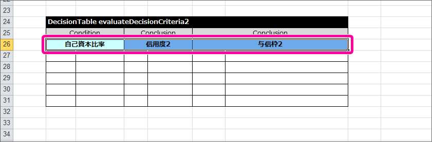評価基準2を実行する DecisionTable を作成する¶