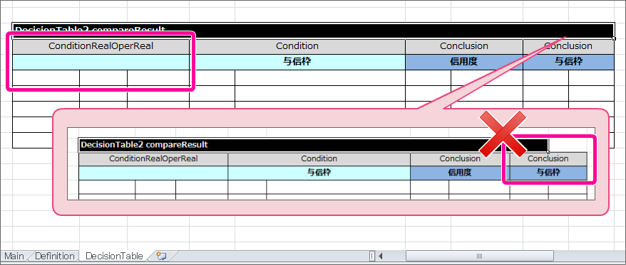 - 異なる DecisionTable の結果を比較する