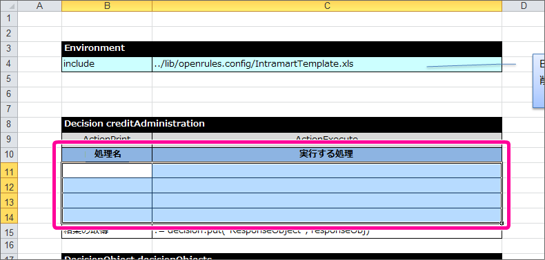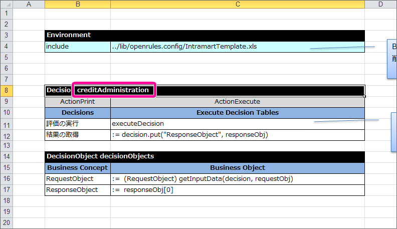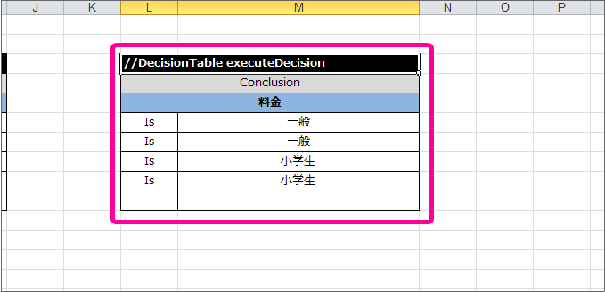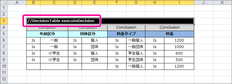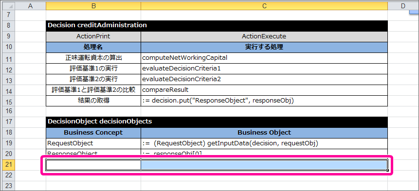 最後に DecisionObject を定義して、Excelのルール定義ファイルを完成させましょう。