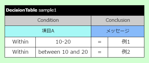 - 条件( Conclusion )での「○○以上△△未満」で評価する
