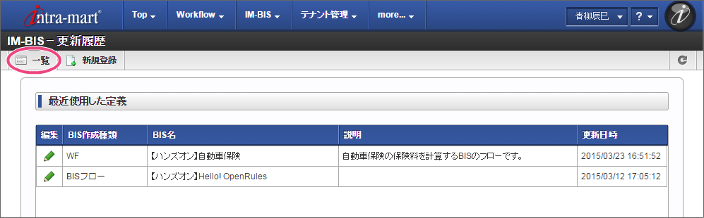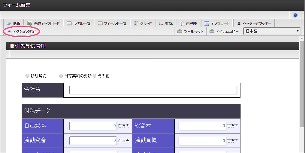 更新したデータソース定義を利用して、 IM-BIS の画面にルールの実行のアクションを設定しましょう。