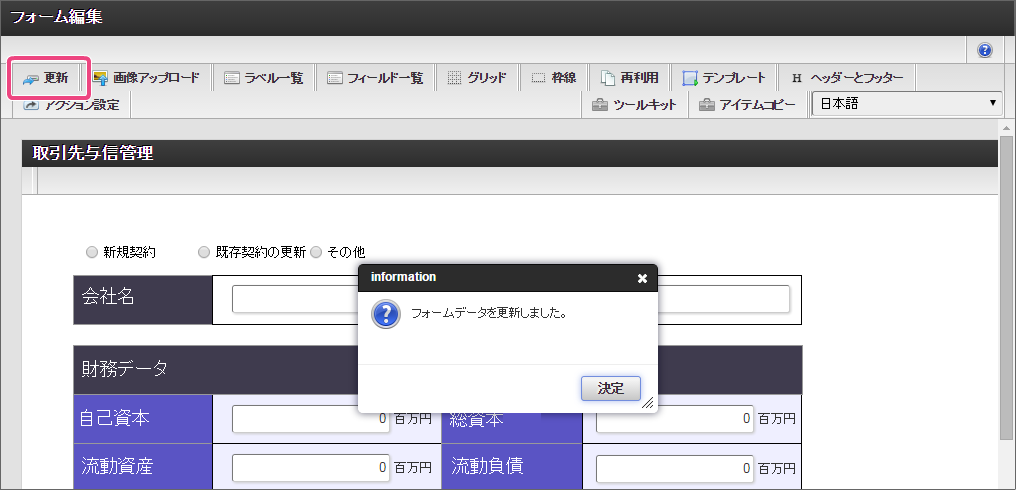 フォーム(画面)の編集を開始する¶
