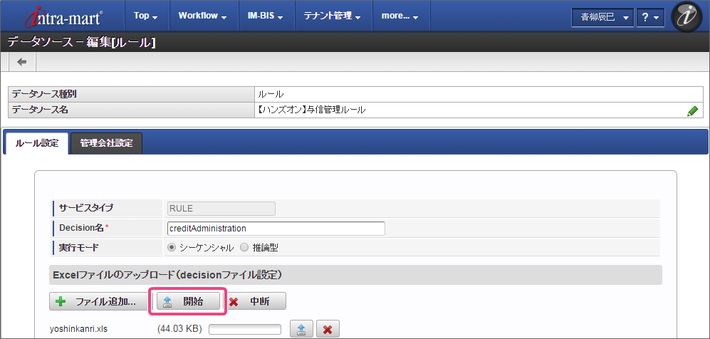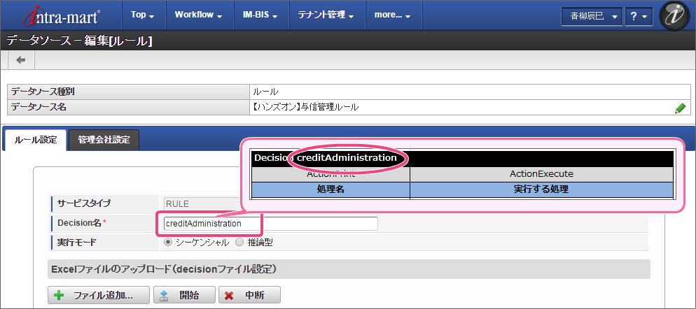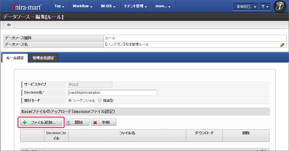IM-BIS と連携するために、 OpenRules のルールを定義したExcelファイルをデータソース定義に登録していきましょう。