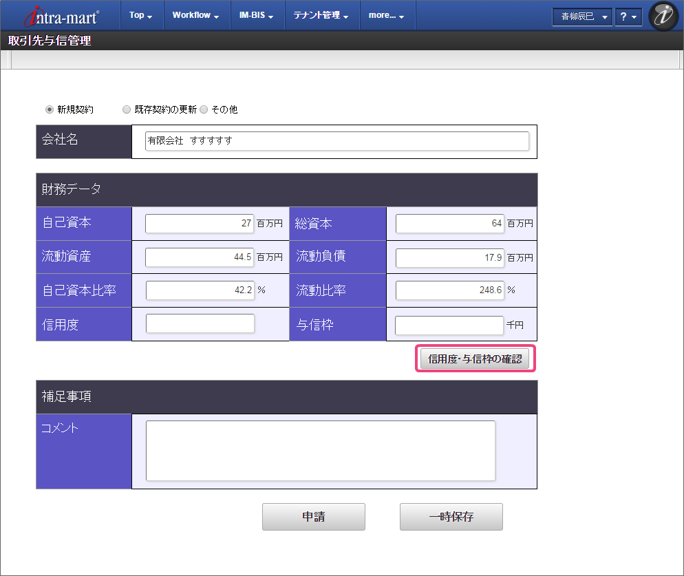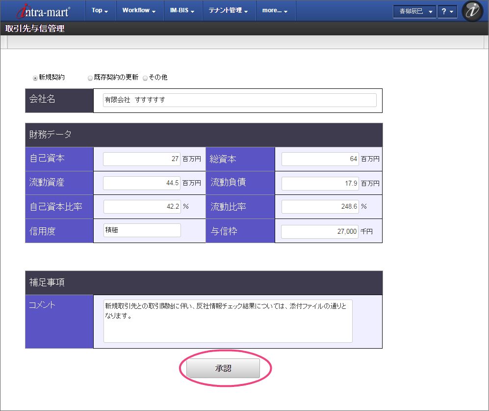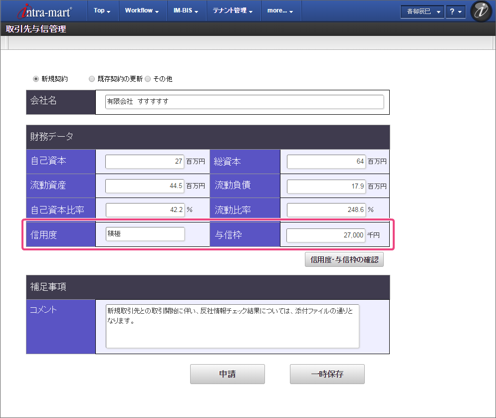 8.4. 取引先の与信管理ワークフローを実行してみよう¶
