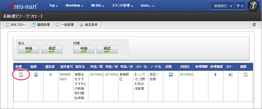先ほど申請した案件を承認しましょう。