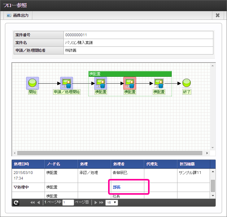 横配置ノードの2番目のノードには、役職:部長が設定されます。