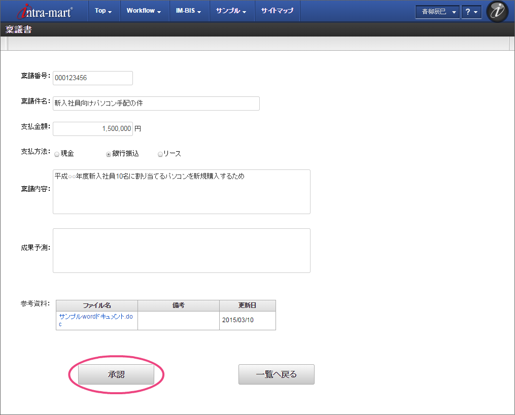 稟議書のワークフローを申請する¶