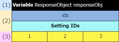 Datatypeには、サブヘッダはありません。Variableで定義するサブヘッダは、処理対象者の設定値を格納する項目の物理名「ids」、論理名「Setting IDs」です。
