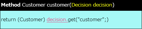 OpenRules 6.3.0では、この Decision インスタンスへのアクセス方法の記述が変更されました。OpenRules 6.2.6以前での記述方法を利用している場合、複数のスレッドで同時にルールを実行する際に正しく対象のインスタンスにアクセスできないなどの問題がありますので、注意してください。