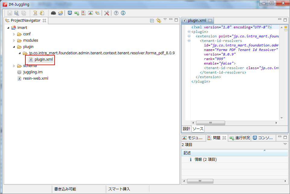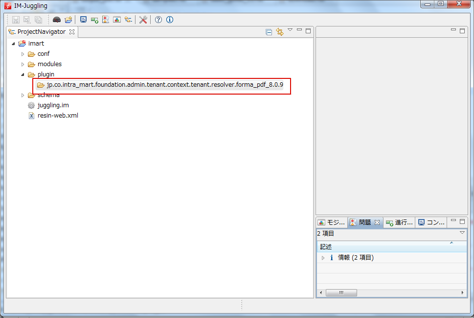「plugin」フォルダに、下記のフォルダを作成します。 上記のフォルダに、以下のファイルを解凍して配置します。IM-Juggling からWARファイルの出力を行い、WARファイルをデプロイすると、設定内容が反映されます。