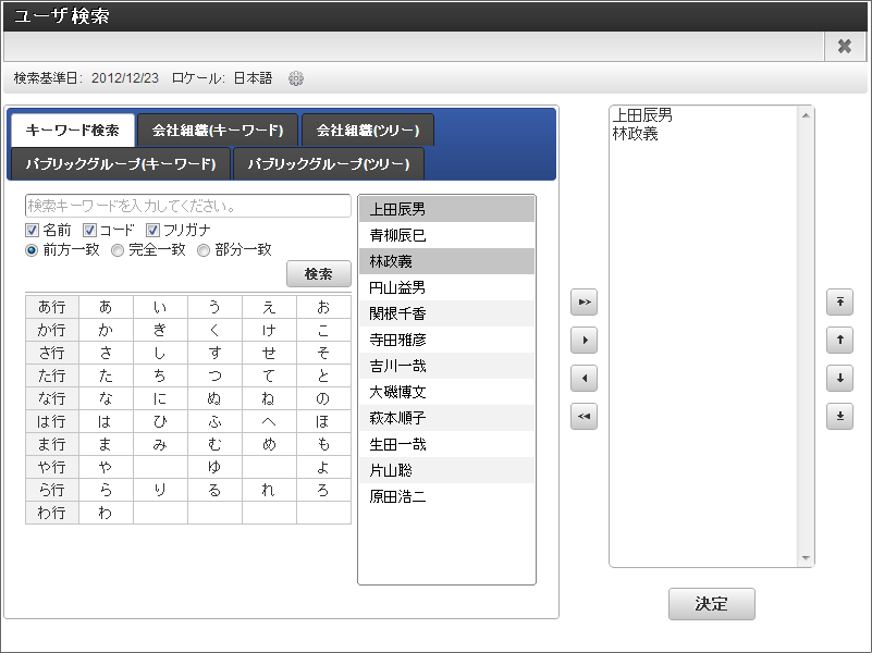 対象のユーザや組織を検索し、「決定」をクリックして追加します。